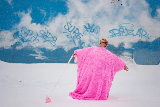 Fluffy World Domination is an outdoor circus performance in which a clown unleashes a plush rebellion. On a miniature tightwire, built on a tower several meters high, she calls to arms for uncompromising inclusiveness. Accompanied by an army of 100 automated cuddly bunnies and puppies, and dressed in inflatable costumes that literlly take up more space than what seems socially '“acceptable'“, she creates an absurdly fluffy universe. This is a manifesto for softness as resistance. Fluffiness as a survival strategy. Love as a revolutionary act. Radical acceptance for yourself and for others. An invitation to everyone who is too much, too soft, too different to join a revolution where fluffiness is not a weakness, but a tactic.